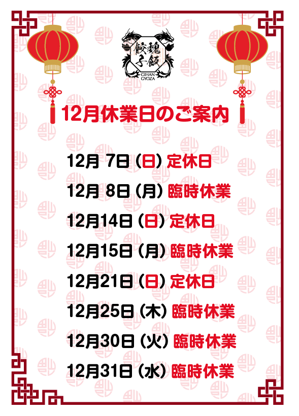 12月休業日のご案内